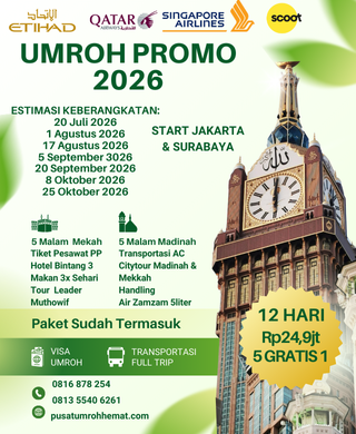 Umroh Promo Juli 2026 12 Hari Rp25Juta-an 5 Gratis 1